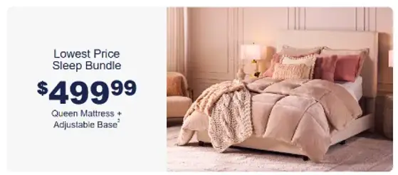 Lowest price on sleep bundle! Shop in store and get queen mattress + adjustable base for $499.99.